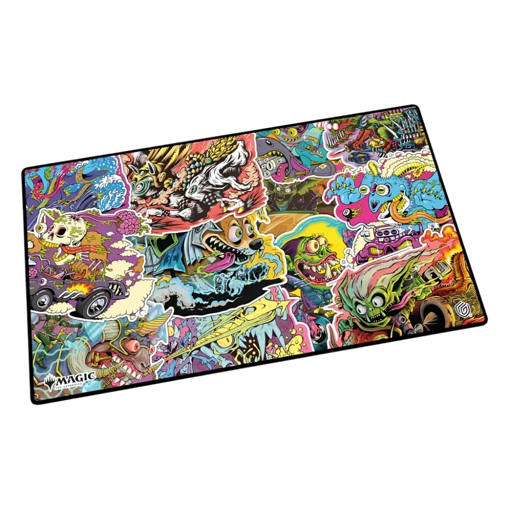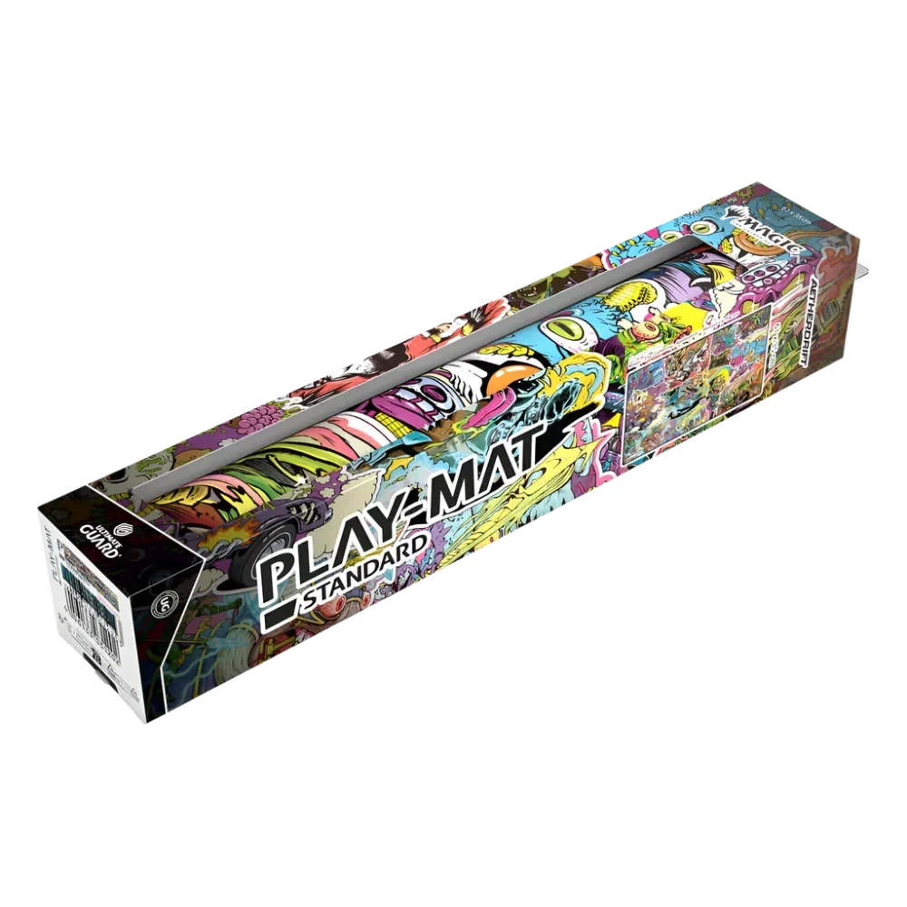The 61x35cm Play-Mat protects cards and sleeves while playing and improves the gaming experience thanks to its anti-slip underside, while the stitched edges guarantee an even longer service life. The top side of the Play-Mat is printed with officially licensed artworks from Magic: The Gathering’s upcoming set “Aetherdrift”.