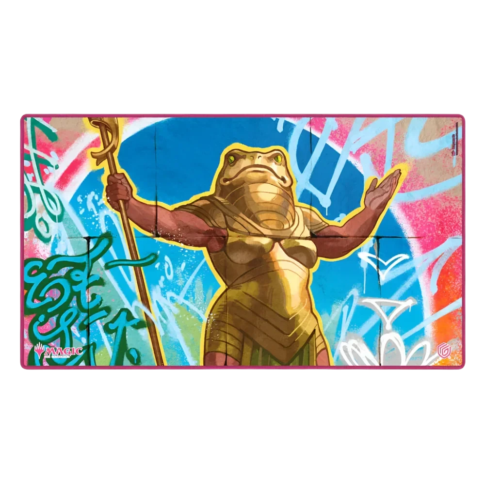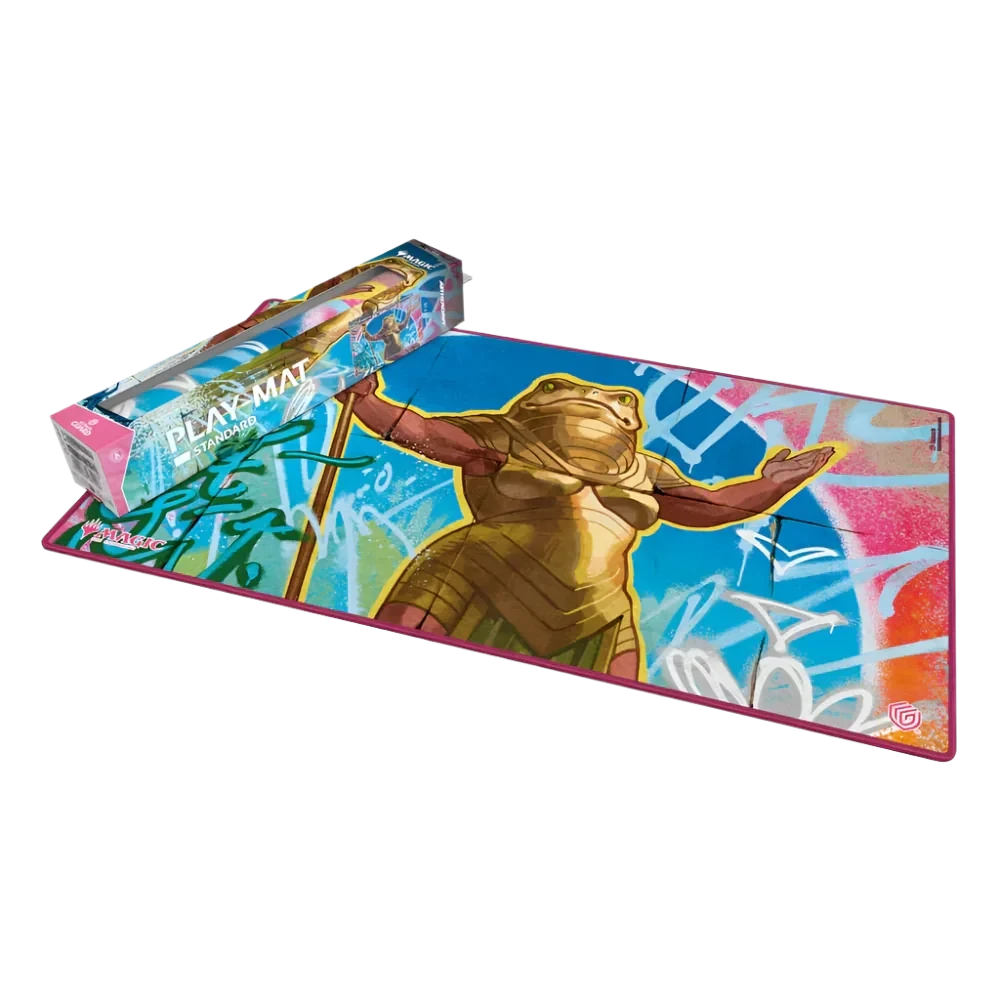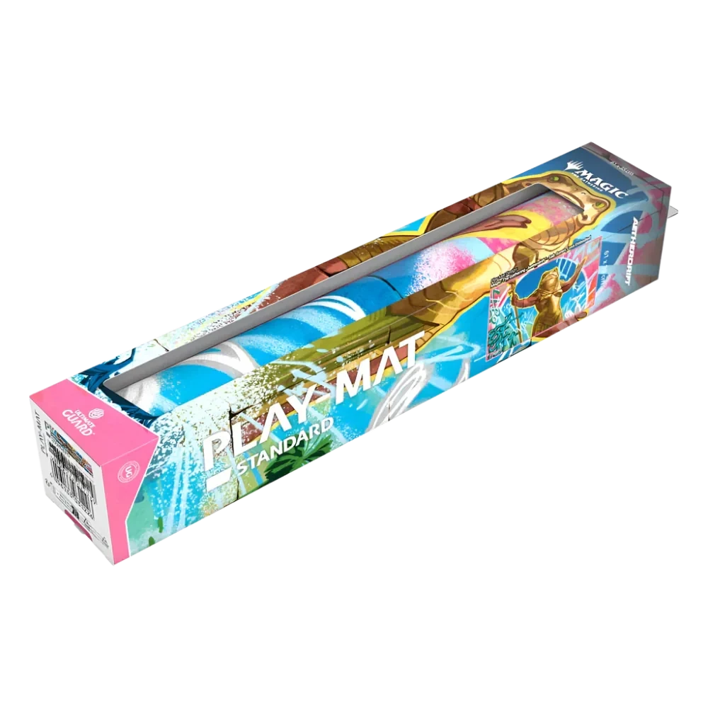 The 61x35cm Play-Mat protects cards and sleeves while playing and improves the gaming experience thanks to its anti-slip underside, while the stitched edges guarantee an even longer service life. The top side of the Play-Mat is printed with officially licensed artworks from Magic: The Gathering’s upcoming set “Aetherdrift”.