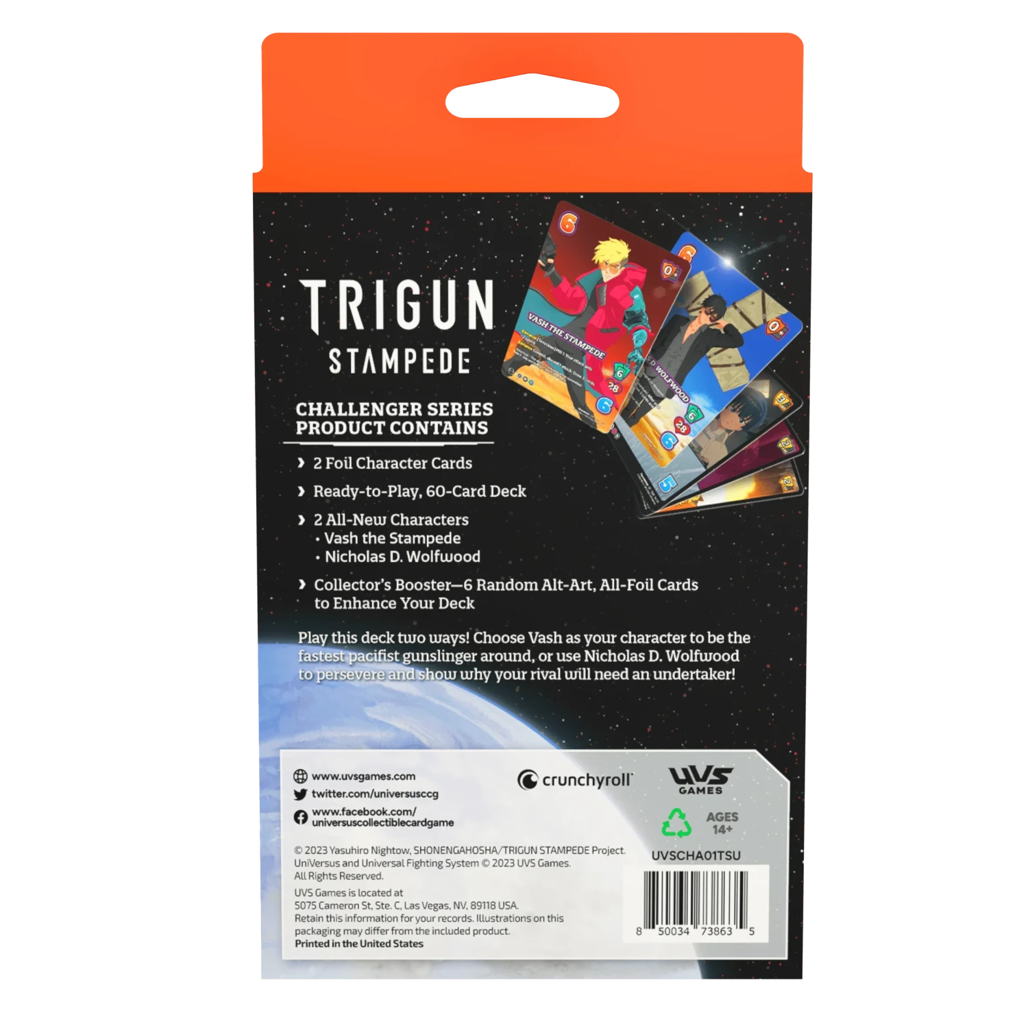Spike is a hero whose cool façade hides a dark and deadly past. Vash the Stampede is a joyful gunslinging pacifist, so why does he have a $6 million bounty on his head? This release represents a new product in the UniVersus line – Challenger Decks! Exploring new Ips, these decks are great for new and established players alike!