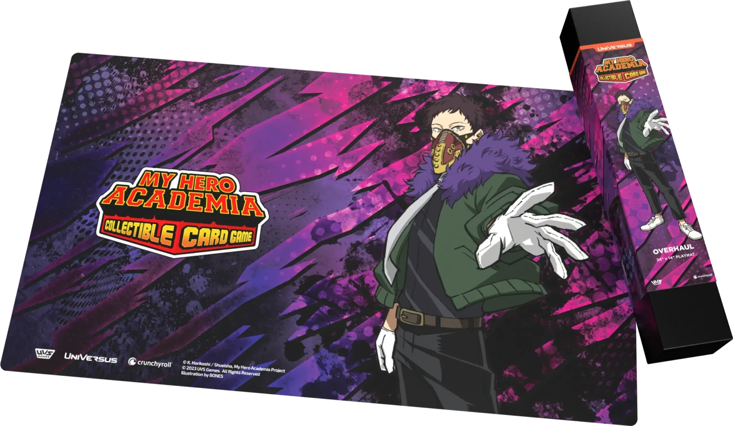 Keep your cards safe and show them off in style with this official MY HERO ACADEMIA COLLECTIBLE CARD GAME playmat featuring Overhaul! Artwork and design is exclusive to the MY HERO ACADEMIA COLLECTIBLE CARD GAME.