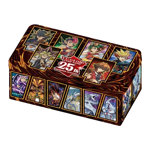 - Each tin will include a Quarter Century Secret Rare version of one of the sixteen monsters decorating the sides of the tin.